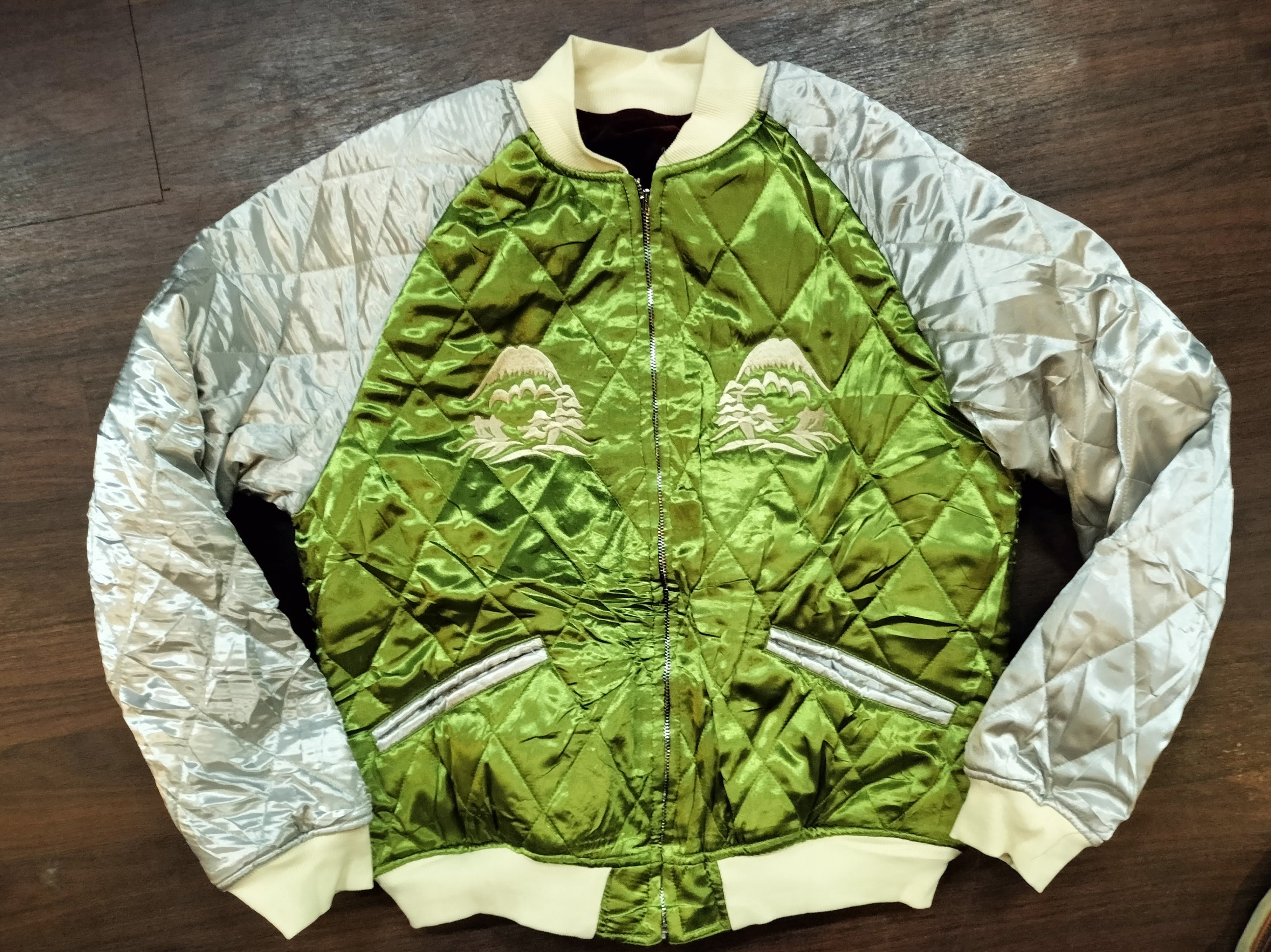 #417 別珍スカジャン 白虎 ワイン x オリーブ
